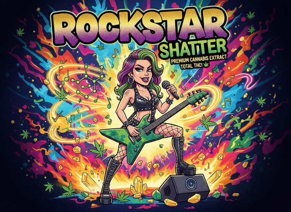 Rockstar Shatter is a premium indica-dominant cannabis extract with spicy, earthy flavors and deeply relaxing, euphoric effects—perfect for winding down.